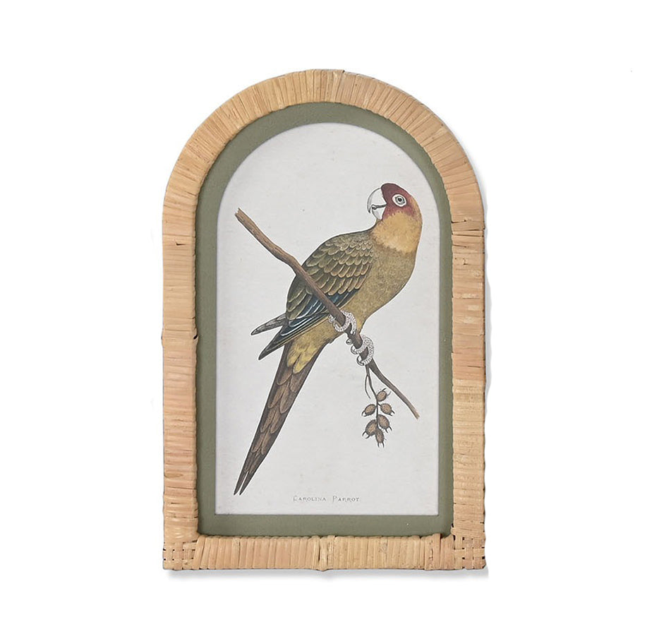 Cuadro decorativo loro Carolina con marco de fibras naturales