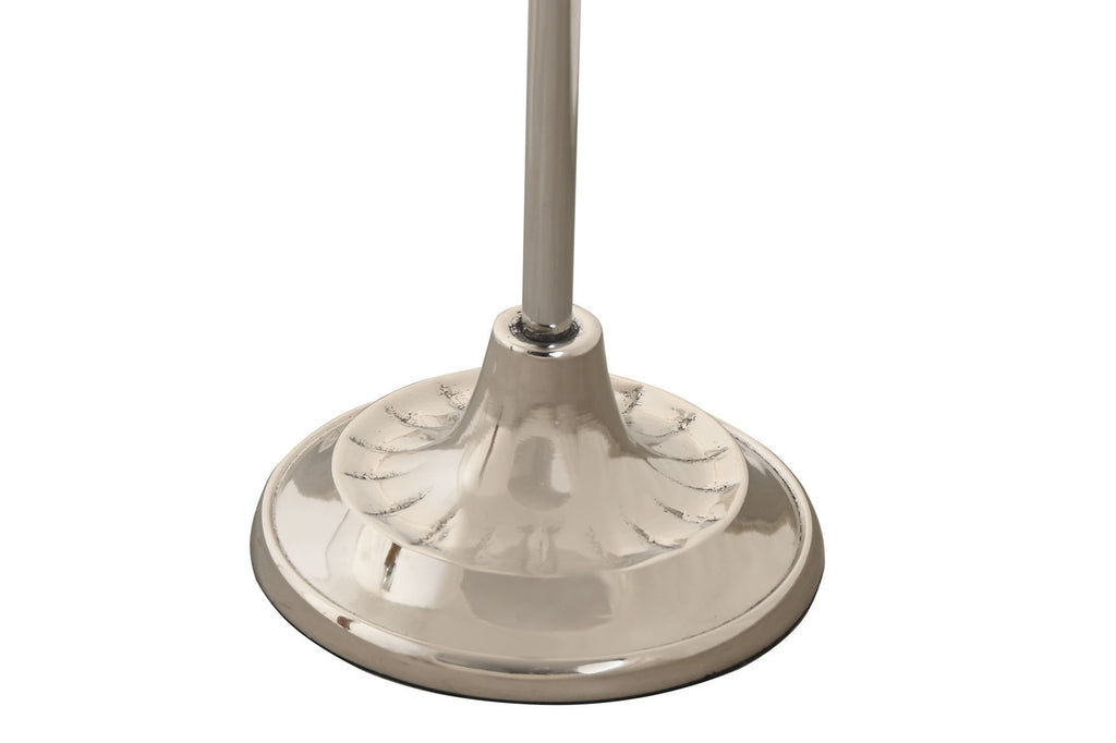 Ambas piezas —la lupa de aumento de cristal óptico y el abre cartas de acero pulido— descansan con elegancia sobre un soporte vertical cromado, que mantiene el conjunto siempre a mano y perfectamente organizado. Los mangos cónicos de madera aportan un toque cálido y sobrio, que contrasta de forma exquisita con el brillo metálico del conjunto.