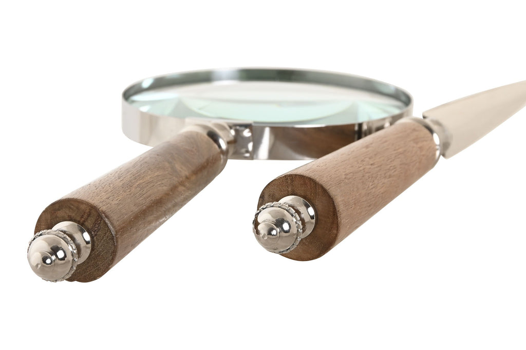 🔎 Set de lupa y abrecartas con mango de madera y soporte cromado