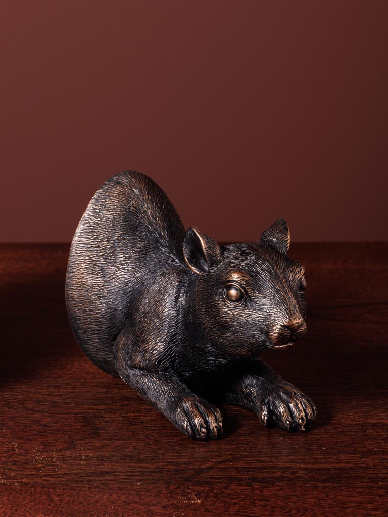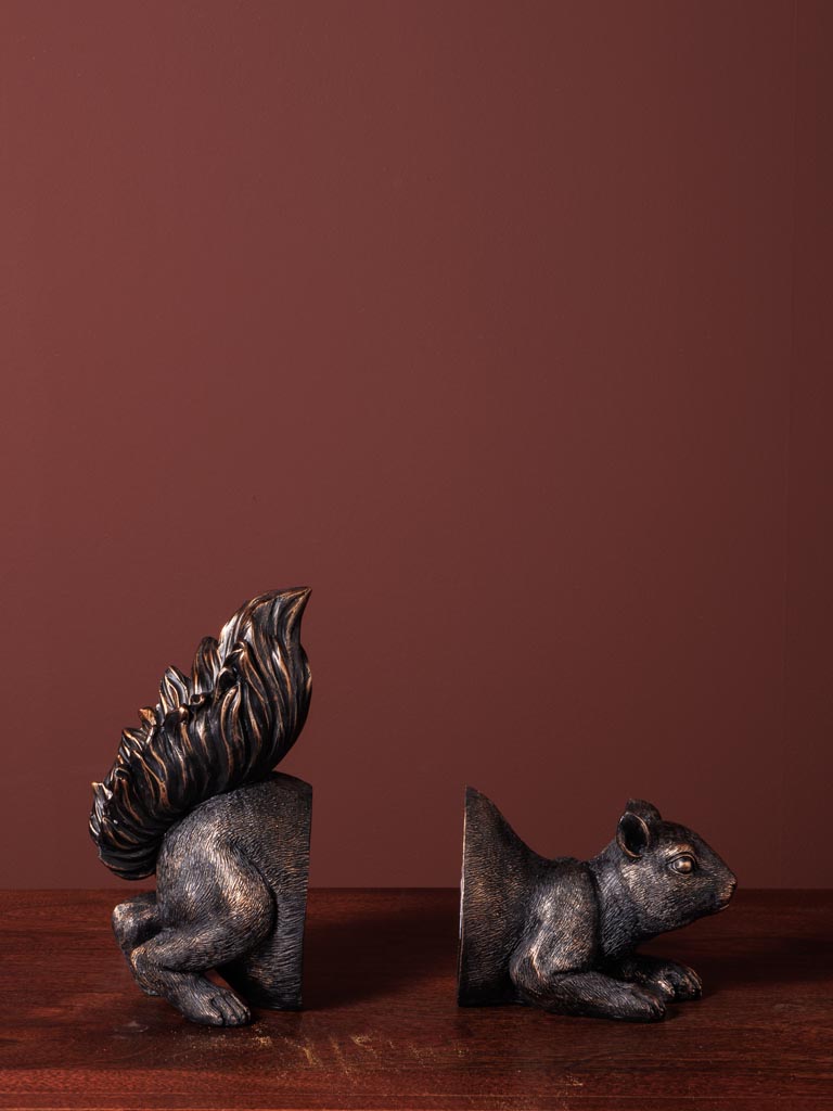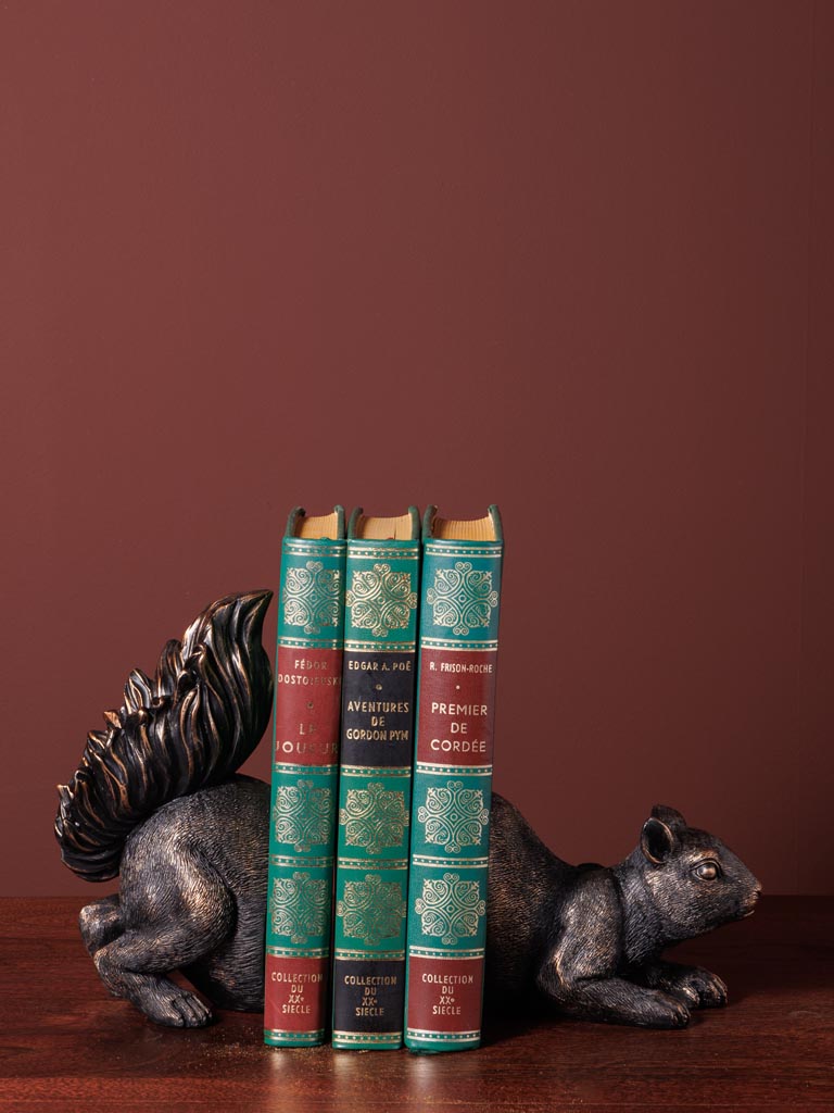 Sujetalibros ardilla de resina en acabado bronce – Pieza original y funcional