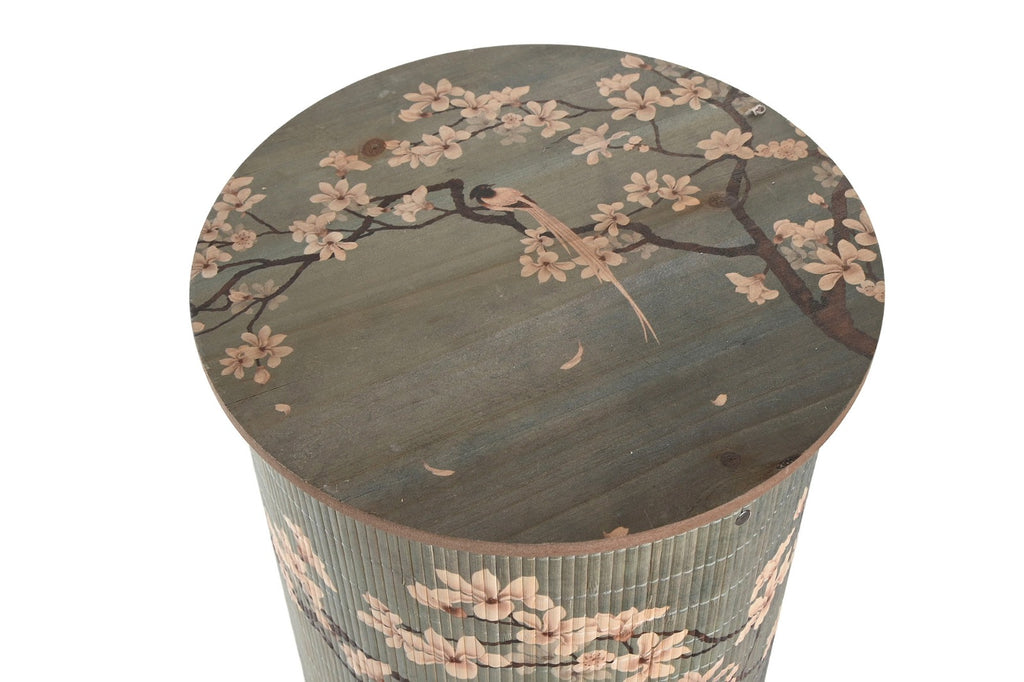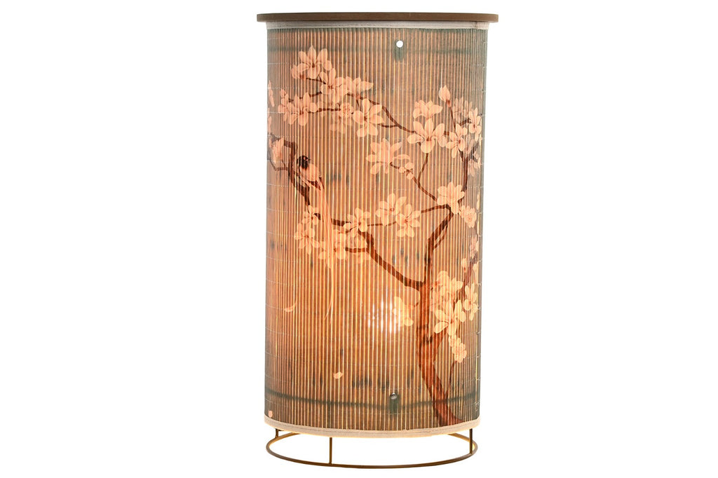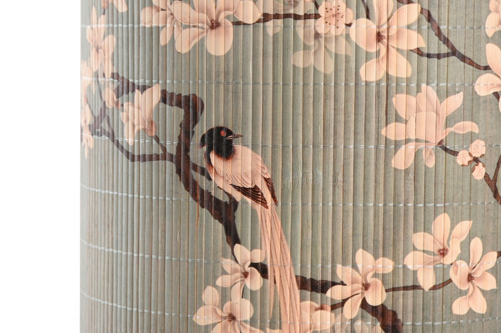 Lámpara oriental vintage cilíndrica con flores de cerezo y pájaros