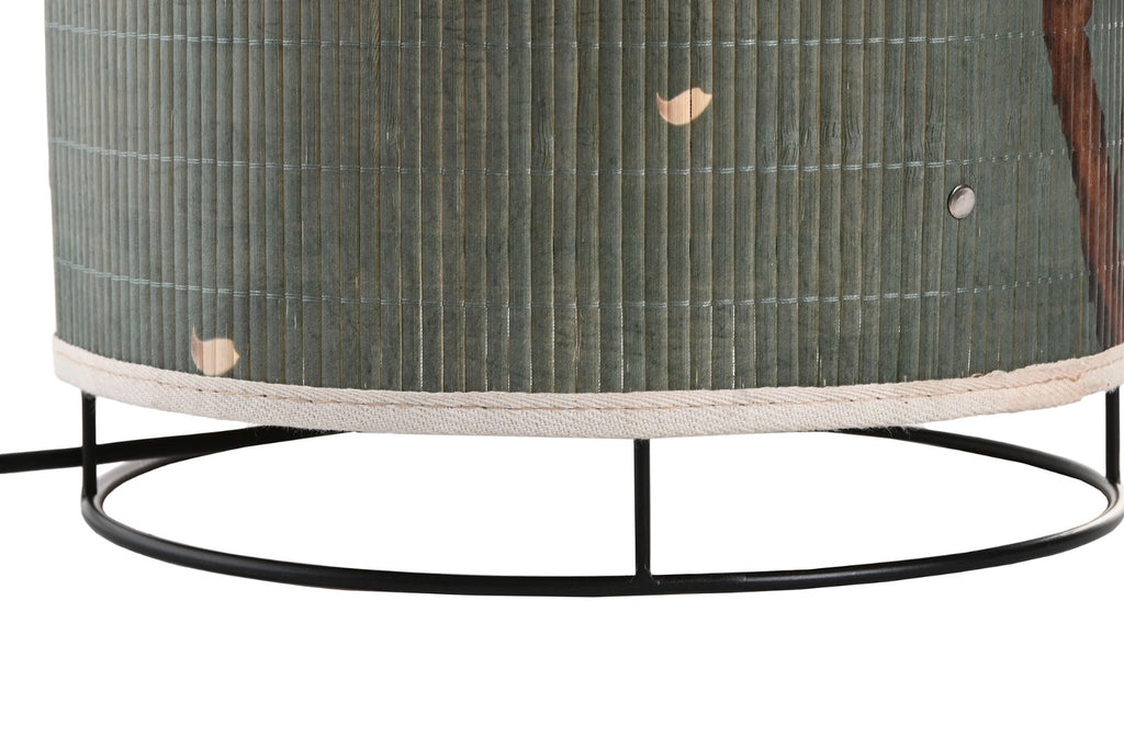 El juego de luces al encenderla crea una atmósfera cálida y envolvente, resaltando los tonos suaves del diseño floral. Su estructura ligera, con base metálica en color negro, aporta un equilibrio perfecto entre lo artesanal y lo contemporáneo, lo que la convierte en un complemento ideal tanto para interiores clásicos como para espacios de inspiración oriental o wabi-sabi.
