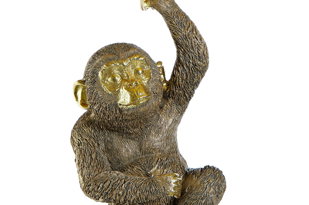 Desde el primer vistazo, el protagonista es el pequeño mono dorado, que cuelga despreocupado de un cordón dorado justo debajo de la pantalla. Con un acabado dorado mate y detalles cuidadosamente definidos, aporta un toque animalista con aire glam, ideal para hogares con personalidad. El interior dorado de la pantalla amplifica la calidez de la luz y crea un ambiente acogedor y teatral a partes iguales.