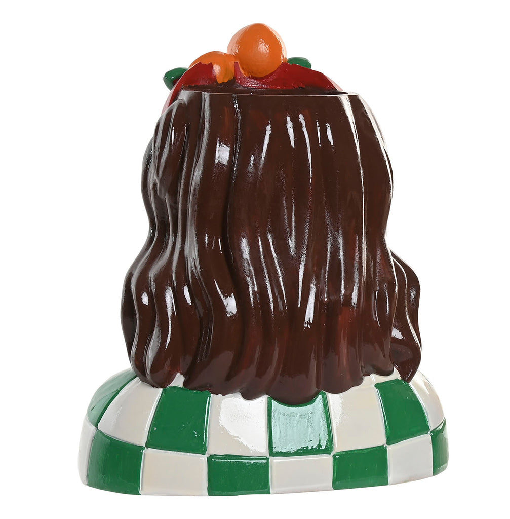 Jarrón decorativo mujer con frutas en resina – pieza artística llena de color