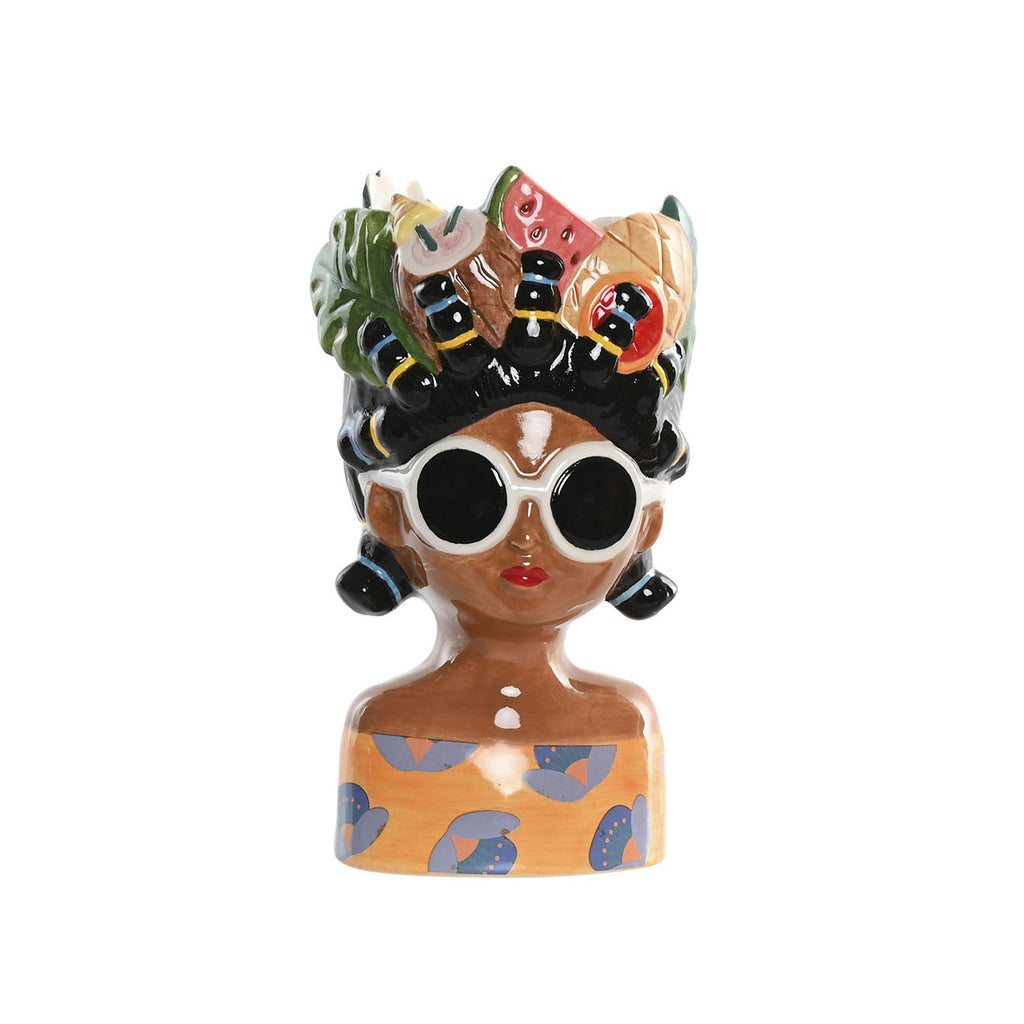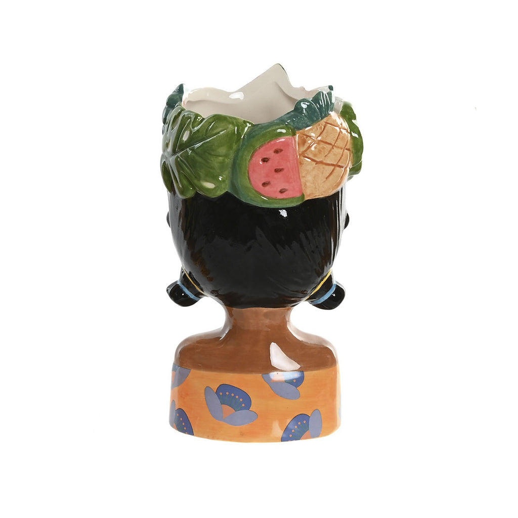 Jarroncito de Cerámica Mujer Tropical con Rulos y Frutas