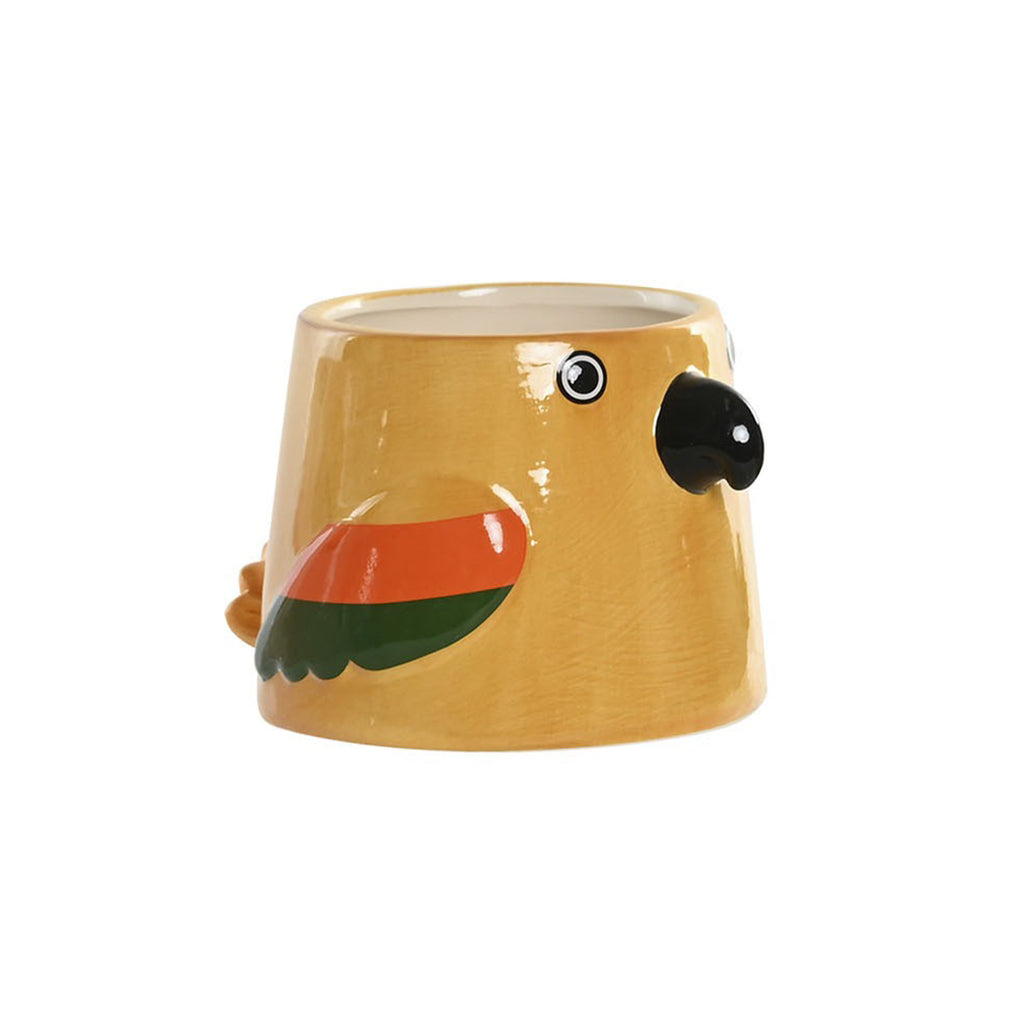 Macetero cotorra amarillo de cerámica con diseño divertido