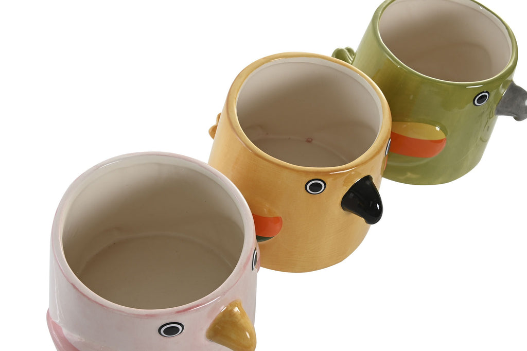 Si buscas un accesorio alegre y lleno de personalidad, este macetero cotorra amarillo de cerámica es justo lo que necesitas. Su diseño en forma de simpático loro, con pico negro en relieve y alas de colores, lo convierte en un detalle decorativo único y encantador.