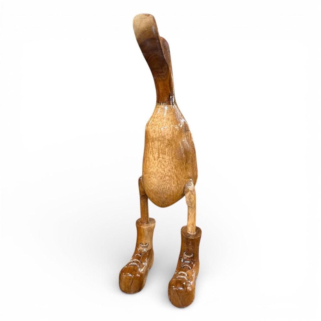 Figura de pato con botas hecha a mano en madera de teca