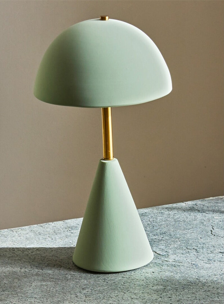 El acabado en verde mate aporta frescura y serenidad, mientras que el detalle metálico en dorado otorga un aire sofisticado y elegante. Gracias a su diseño minimalista y moderno, esta lámpara se convierte en un objeto decorativo por sí mismo, perfecto tanto para salones y dormitorios como para despachos u oficinas que buscan un toque de diseño exclusivo.