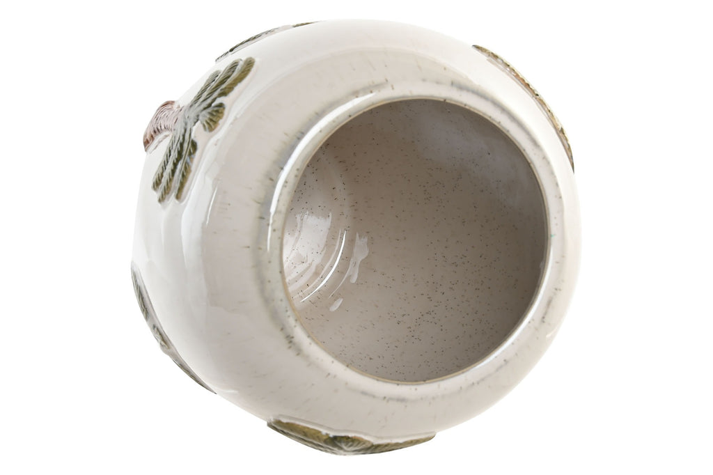 Este jarrón de cerámica beige con palmeras en relieve es un flechazo a primera vista para los amantes de la decoración con alma tropical, natural y con un aire artesanal. Realizado en cerámica vidriada de aspecto vintage, este jarrón no solo es funcional, sino que se convierte en una pieza decorativa con personalidad propia.